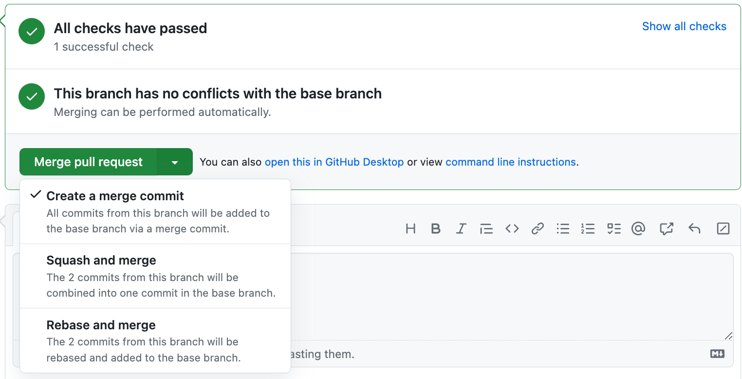 깃허브에서 merge하는 방식을 보면 3가지 방식이 있는것 또한 확인할 수 있고 각각의 Merge의 특징을 살펴보며 차이점을 살펴보자.