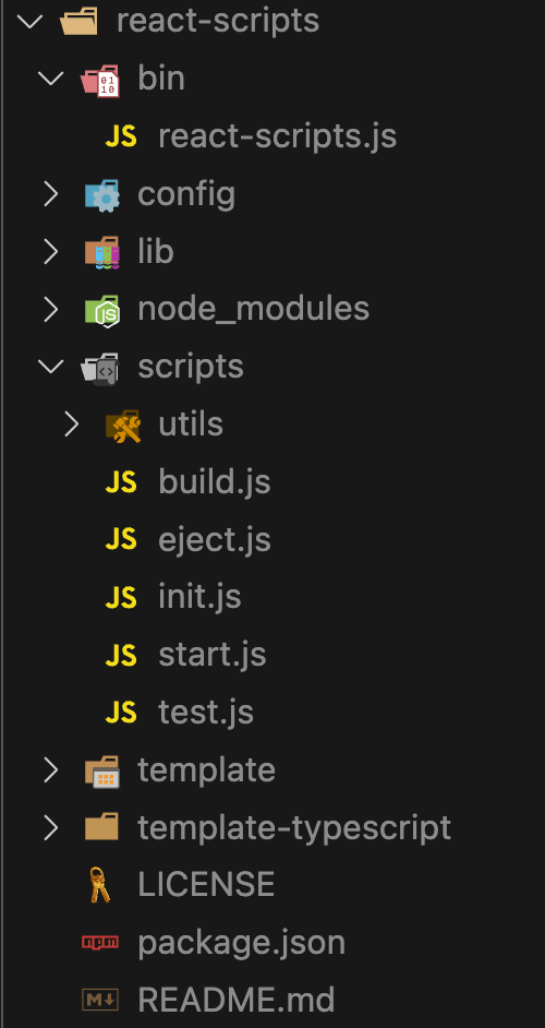 react-scrips start는 무슨의미 일까요? 이는 react-scripts 모듈을 start 하겠다는 의미로 해석 할 수 있습니다. node_modules에 있는 react-scripts는 다음과 같습니다.